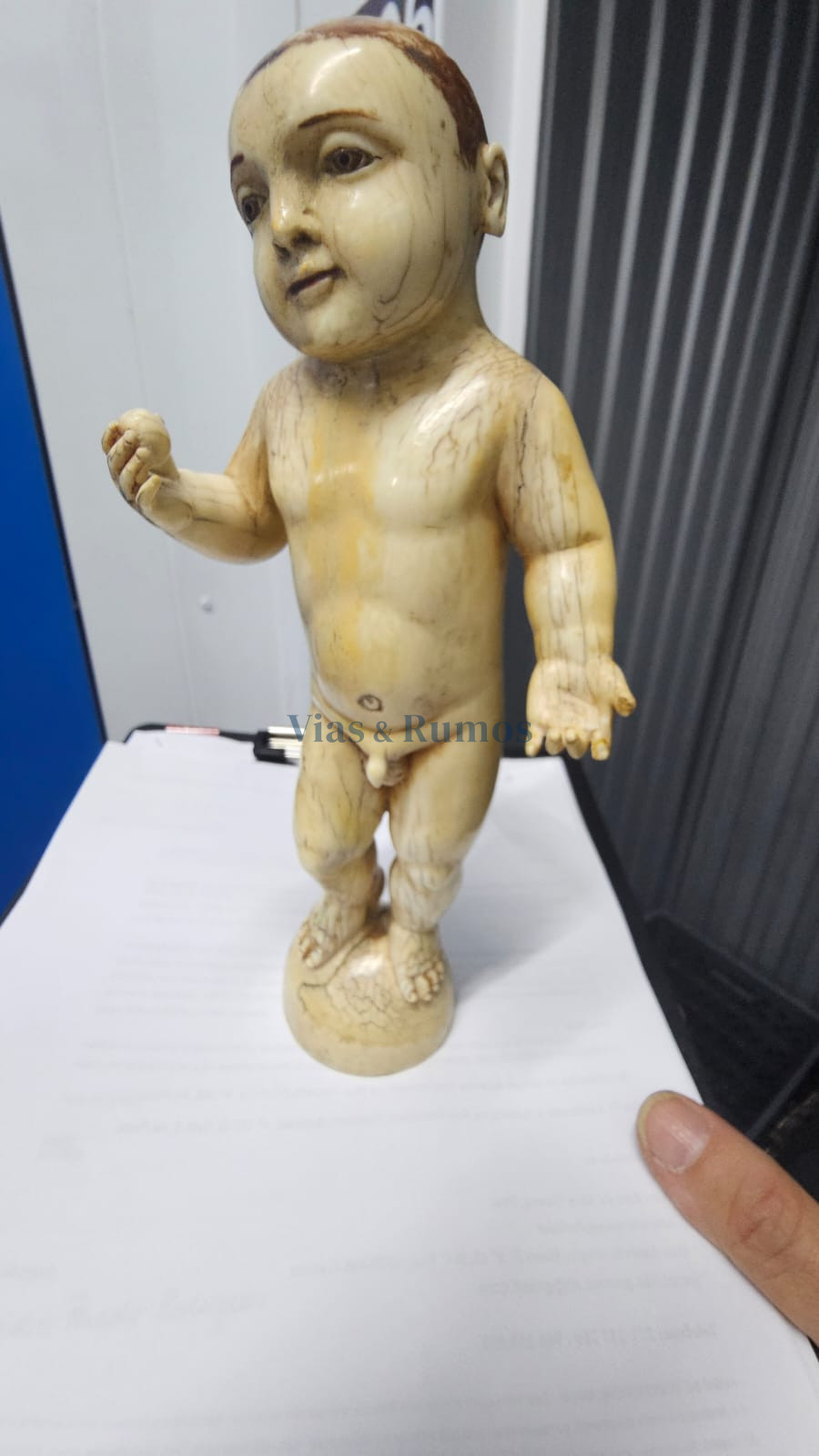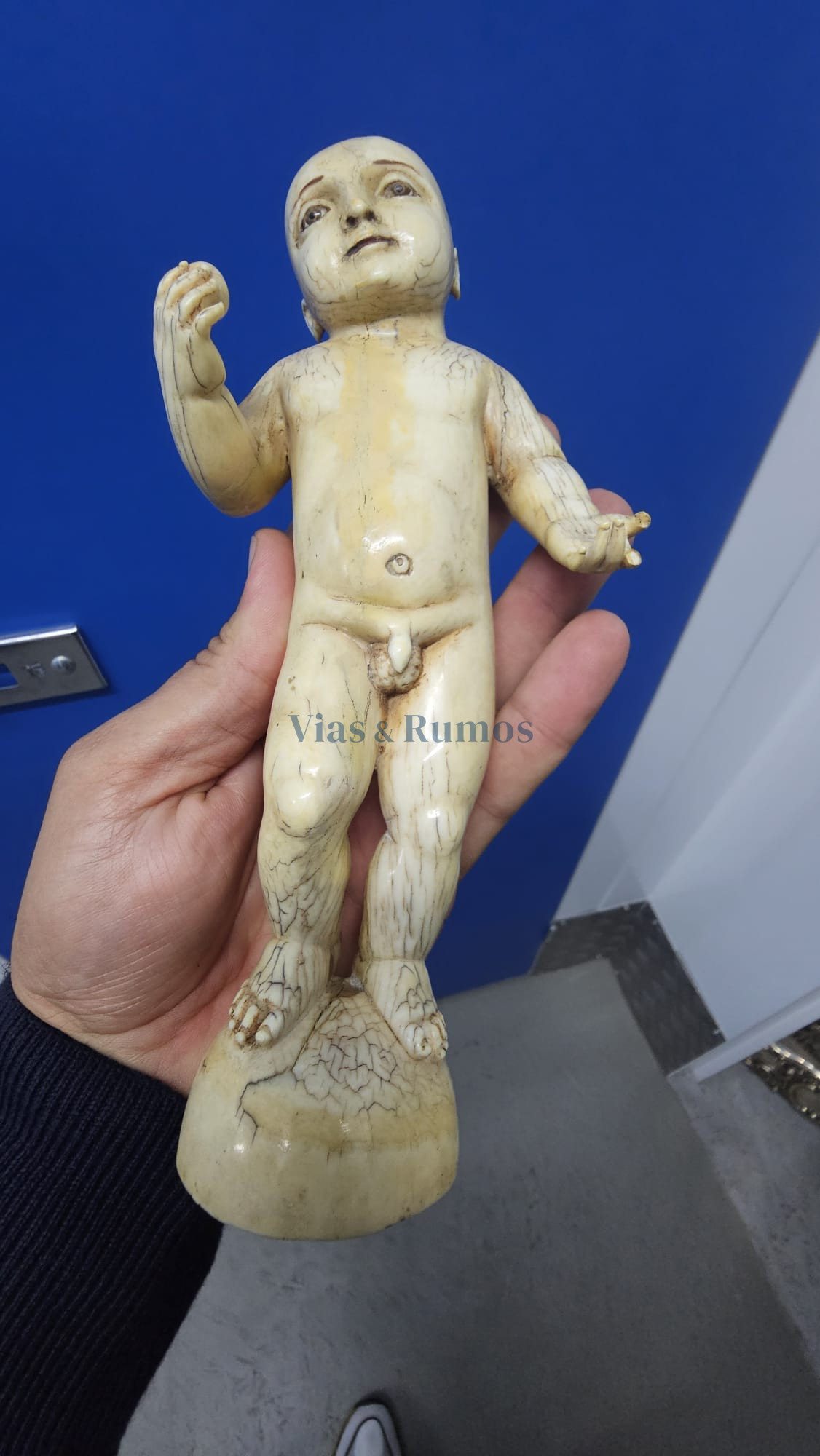 Menino Jesus em Marfim, de origem Hispano Filipina com certificado de autenticidade de Paul Garnier e Certificado CITES.