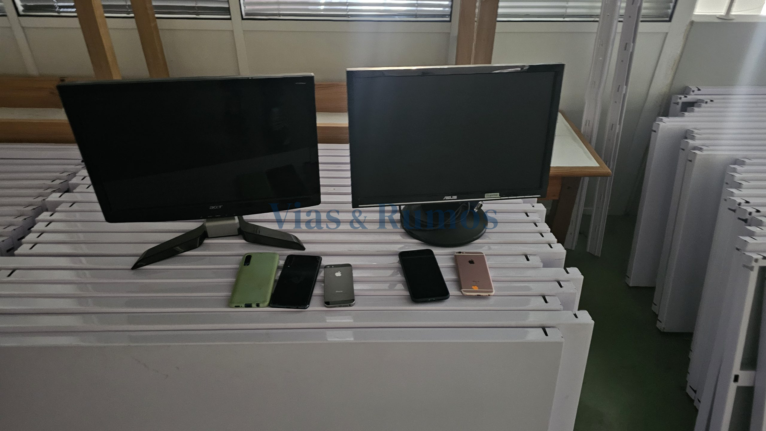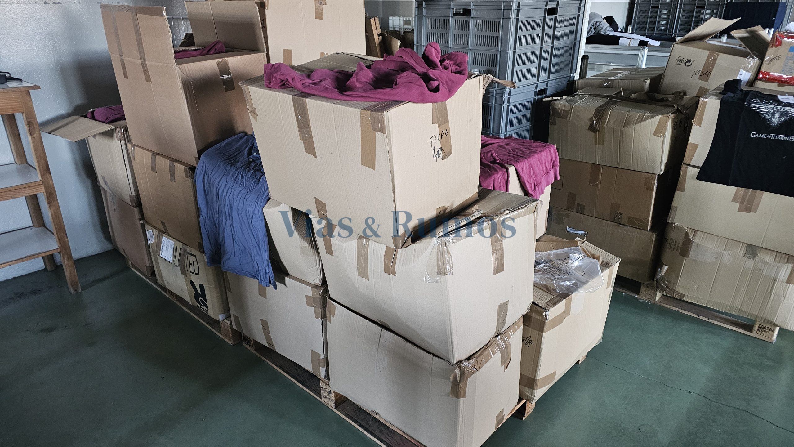Um lote de rolos de malha de várias cores e tecidos, 36 caixas contendo peças de vestuário acabado de vários modelos e cores, 1 sofá de 1 lugar, 1 cadeira com rodízios, 1 frigorifico marca Nevir, 1 microndas marca Delive, 2 cadeiras com rodízios, 1 lote de estruturas metálicas desmontadas de cor branca, 6 caixas de suetes, 1 monitor marca Lenovo, 1 impressora marca HP modelo 6020, 1 aspirador marca Prettycare, 1 PC marca Gamemax, 2 monitores marca LG, 1 monitor marca Lenovo, 2 portátis marca Lenovo, 1 portátil marca Hwawei, 1 portátil marca Acer, 1 portátil marca Assus, 1 telemóvel marca Redmi, 1 portátil marca Yoga, 1 impressora marca Canon Pro 200, 1 TV marca Samsung, 1 portátil marca HP, 1 Tablet marca Ipad, 1 portátil marca Mac, 1 portátil marca Asus, 1 computador marca Cooler Master, 1 Monitor marca Acer, 1 monitor Asus, 1 Iphone modelo 6, 1 Iphone modelo 5, 2 telemóveis marca Samsung, 1 telemóvel marca Xiomi, 1 cadeira com rodízios, 1 carrinho metálico, 1 aquecedor marca Kunft, 1 lote de material acabado de senhora e homem, 1 lote de caixas de embalagem e sacos de plástico, 1 sofá de 1 lugar, 1 máquina de lavar roupa.