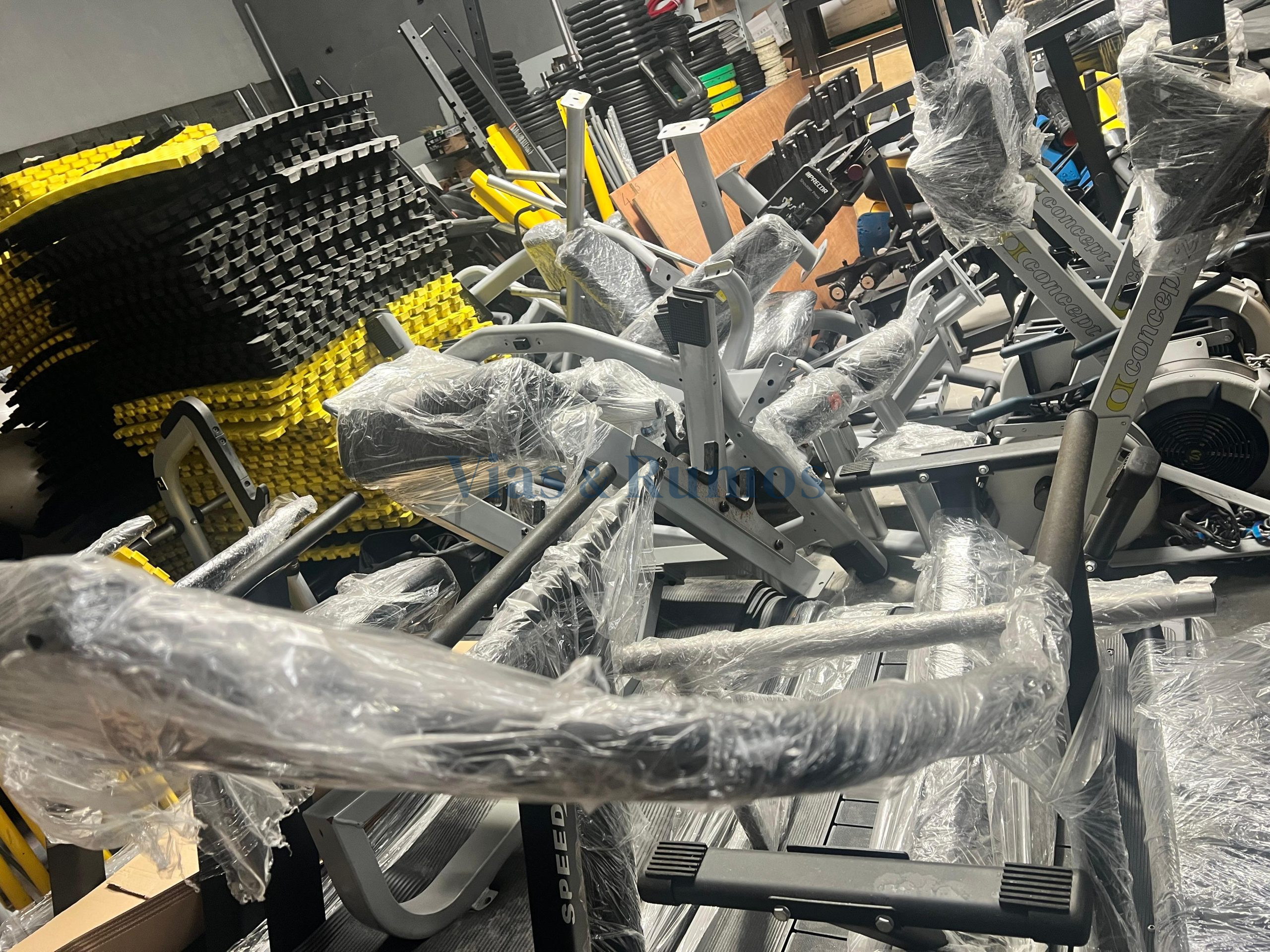 Equipamentos de ginásio desmontados